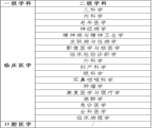 best365网页版同等学力人员申请临床医学、口腔医学硕士专业学位学科目录