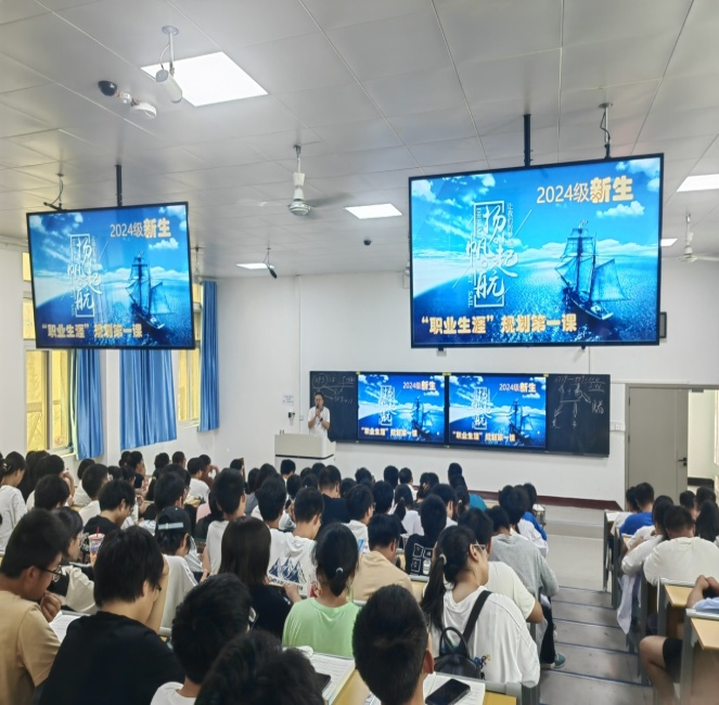 本网讯(通讯员:沈琴)为促进2024级新生尽快适应大学生活,帮助他们树立科学的择业观、就业观、职业观,9月29日上午,best365网页版在1501教室举行2024级新生“扬帆起航——职业生涯规划第一课”的教育活动。best365网页版党委副书记杨靖、学办、团委及辅导员老师和2024级全体新生参加了本次大会。