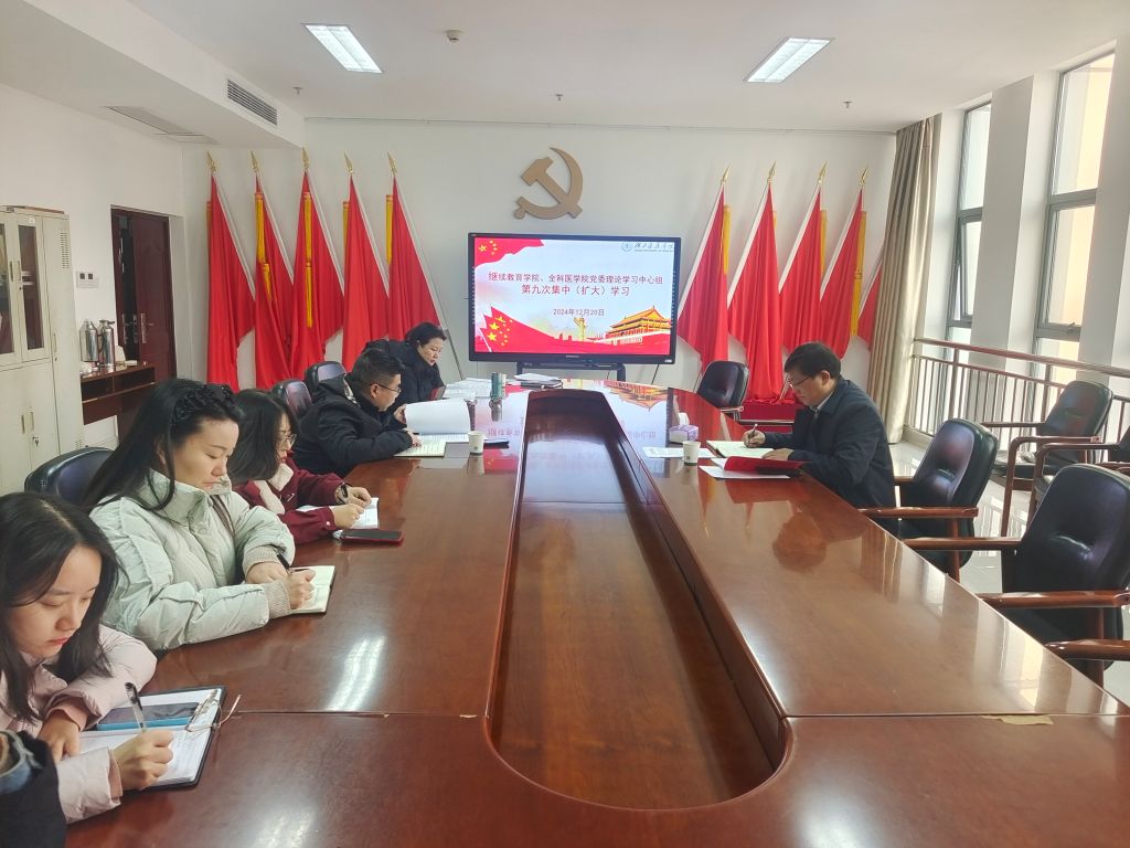 (通讯员 苗丰)12月20日上午,继续教育学院best365网页版党委理论学习中心组第九次集中(扩大)学习在科教楼1809会议室进行。学习活动由学院党委书记汤俊波主持,学院班子成员、各科室负责人、支部书记参加。校党委副书记、组织部长张海蛟全程督导并作总结讲话。