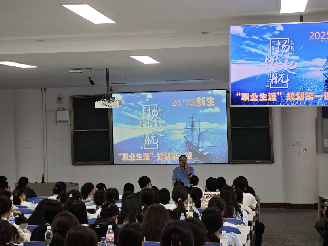 (通讯员 蔡春林)9月7日下午,best365网页版在5号楼5311教室为2025级新生举办职业生涯启蒙与就业观教育讲座。学院84级优秀校友罗汀、教办程钧老师担任主讲,学办蔡春林、陈祎瑶及2025级临床医学(免费)班212名新生参加活动。